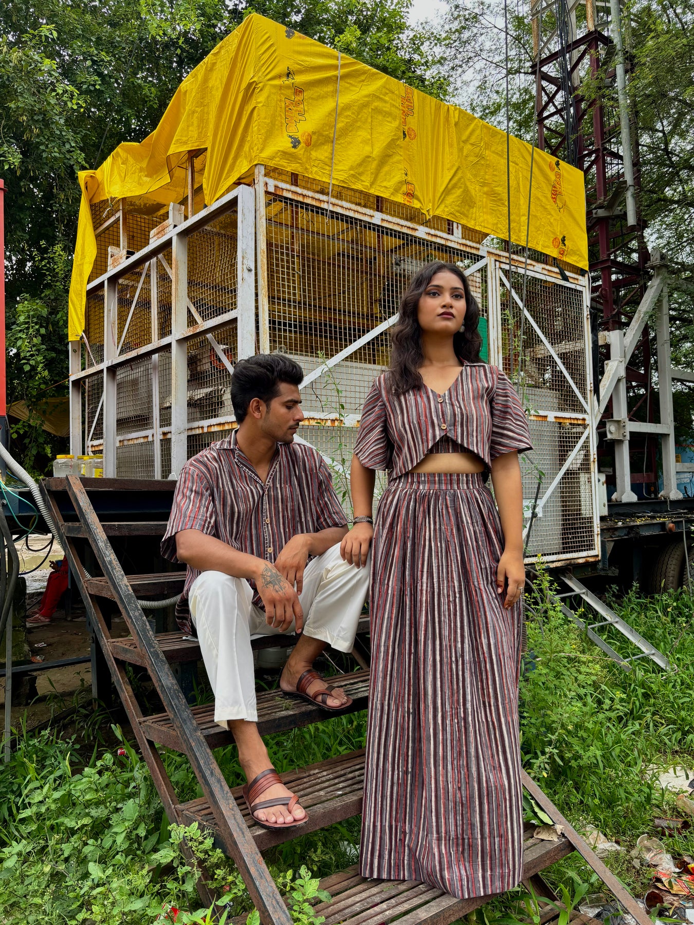Earth Line – Slub Cotton Striped Shirt with Coconut Buttons & Applique Work